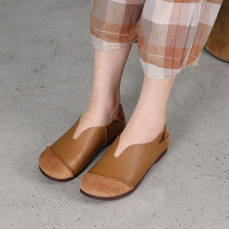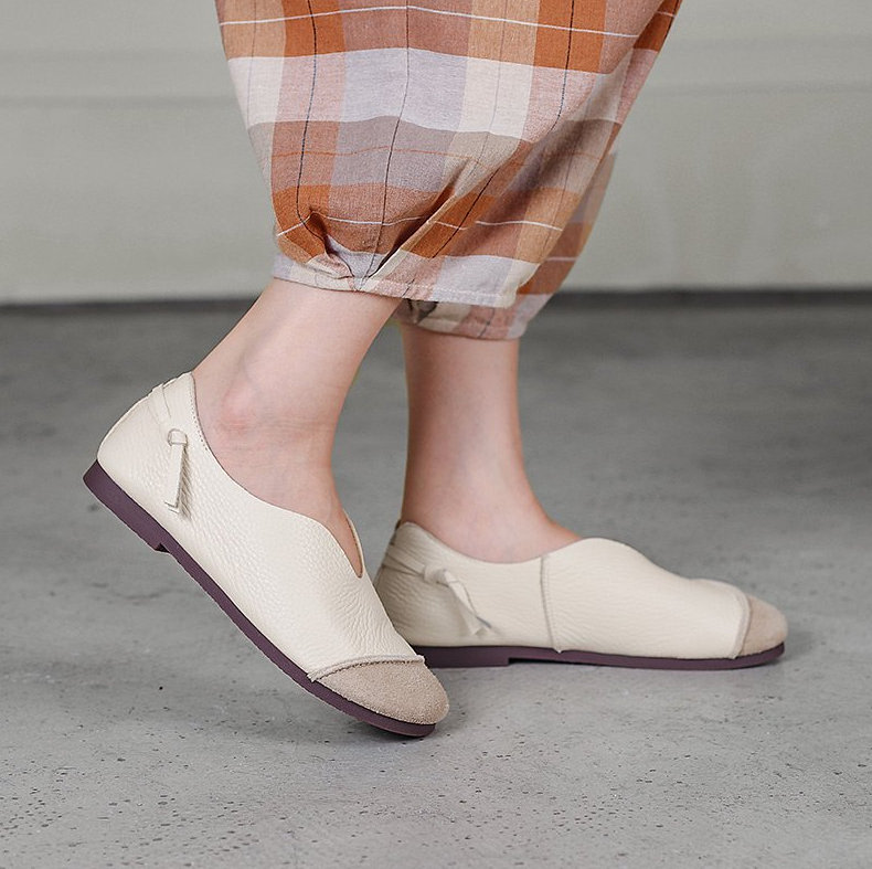 soft leather slip-on flat shoes W25