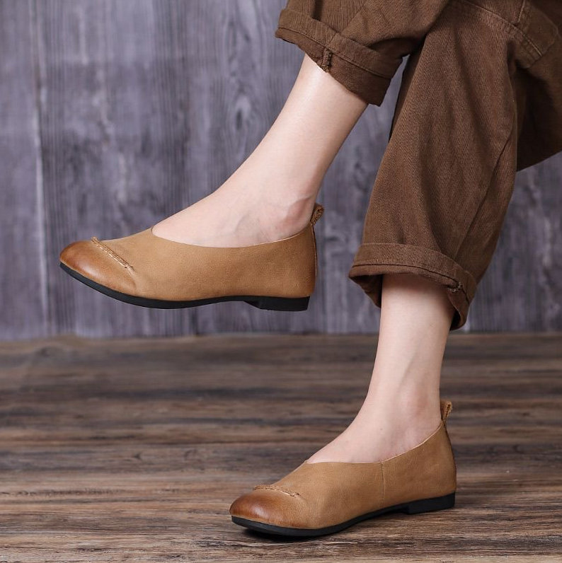 soft leather slip-on flat shoes W29