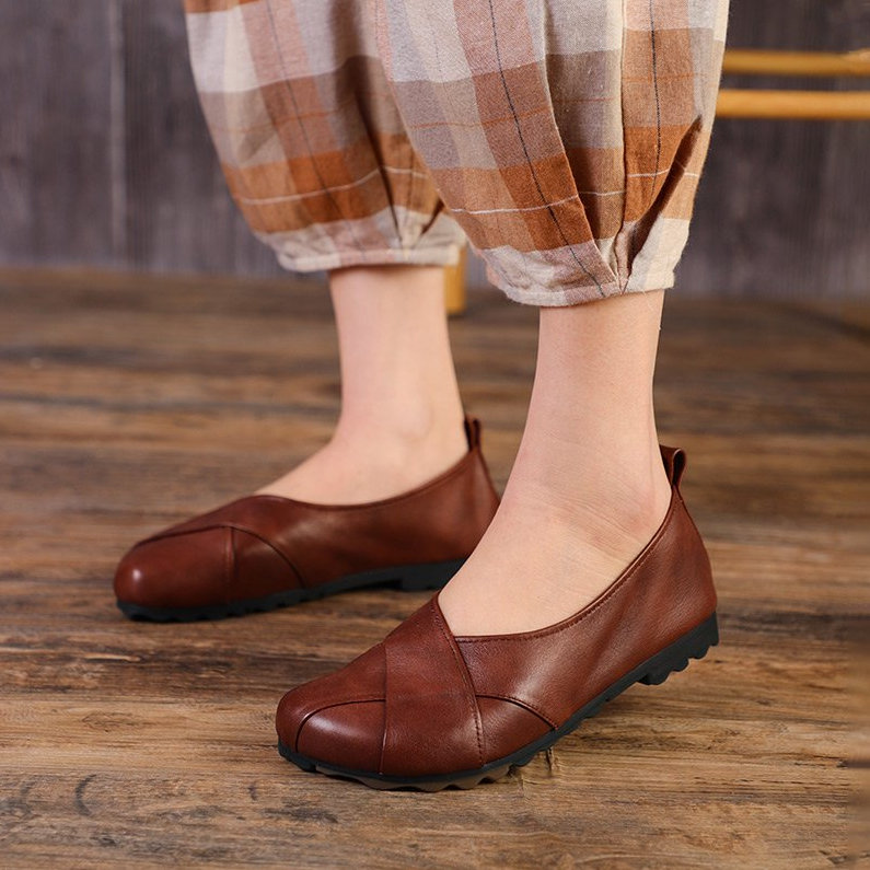 soft leather slip-on flat shoes W44