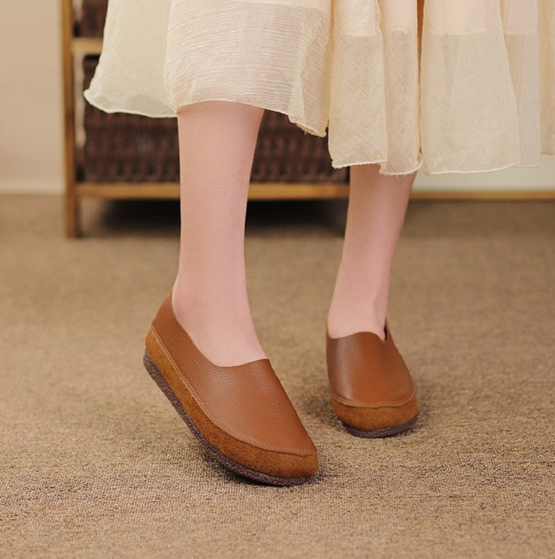 soft leather slip-on flat shoes W04